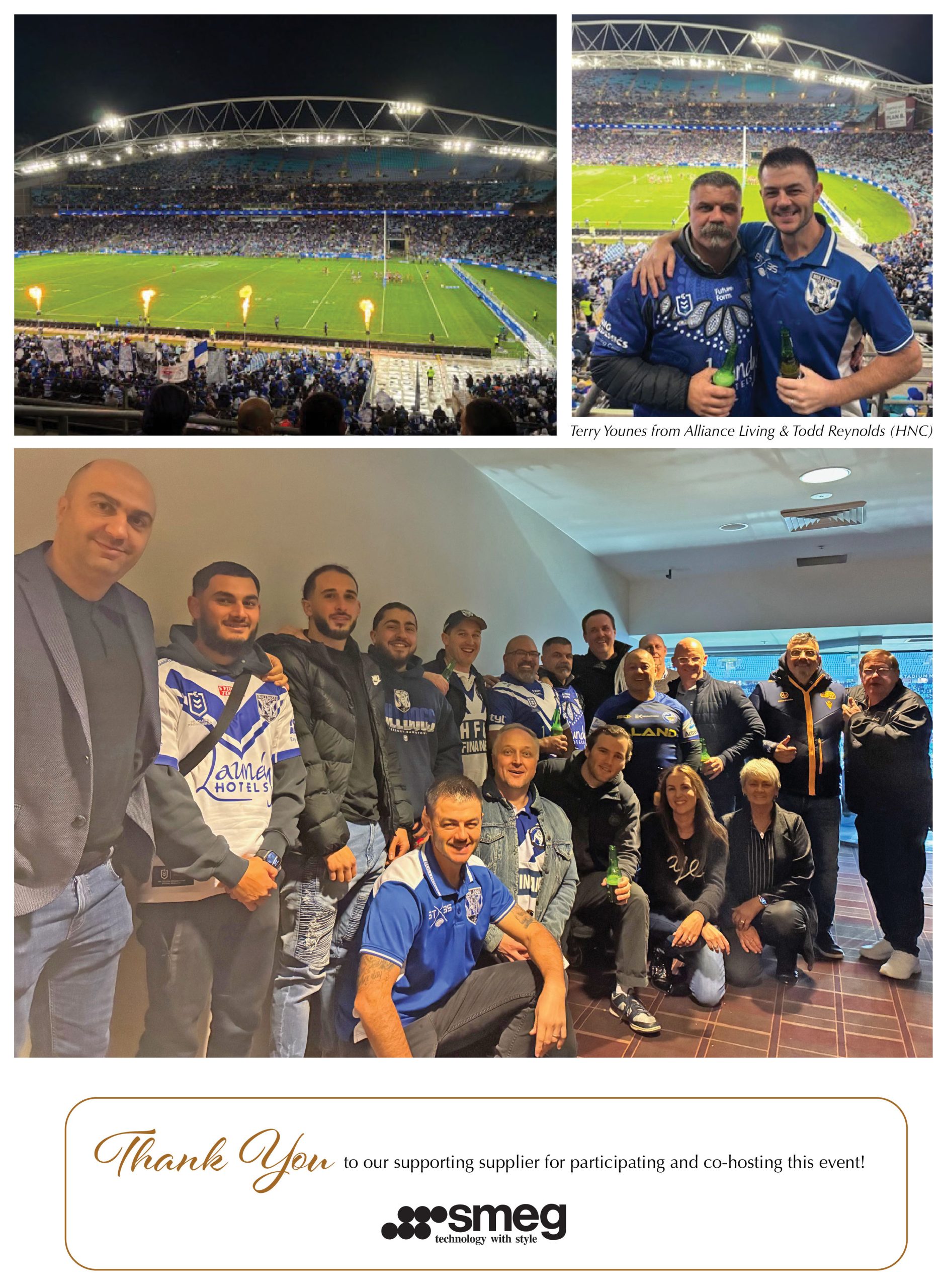 On Monday 9th June, HNC and Smeg took customers from Allianz Living and Fortis Development to the Bulldogs v Parramatta NRL footy match.